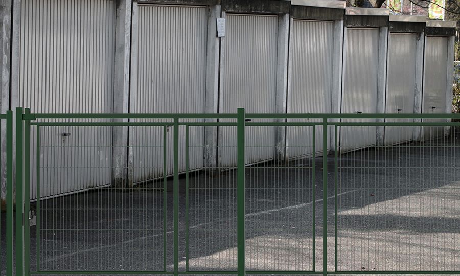 Puerta corredera para vallas Light Enmarcada Plus, de apertura manual, formada por paneles enmarcados. Es una puerta metálica de exterior indicada para instalar con la valla Enmarcada Plus.