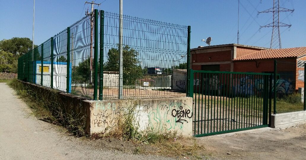 En esta estación de bombeo de agua se ha instalado la Puerta Corredera Pro Barrotes de color verde en la entrada.